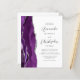 El borde izquierdo de esta elegante invitación de boda moderna presenta un borde de ágata con acuarela morada recortado con brillo plateado falso. El texto personalizable combina fuentes script de color gris carbón y sans serif sobre un fondo blanco. El reverso proporciona espacio para los detalles de la boda en un fondo blanco sólido, junto con un código QR que los invitados pueden escanear para visitar su sitio web y responder, lo que ahorra el costo de imprimir y enviar por correo tarjetas de respuesta separadas.