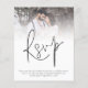 Una alternativa de valor por dinero BUDGET en un tamaño menor de 4,5 x 5,6" de peso semibrillante de 110 libras, que es de espesor similar al de una postal (sin embargo, no es adecuado para usar como postal). POR FAVOR, TENGA EN CUENTA QUE HAY UNA invitación por hoja. Presupuesto Código QR Foto Boda de matrimonio RSVP Gabinete. Invite a sus invitados a responder en línea. Agregue su código QR a la página de respuesta del sitio web de su boda en la parte posterior. Una tipografía de conjunto informal en negro para el título principal RSVP y el resto del texto que se puede personalizar fácilmente. Reemplace la foto de ejemplo con su propio favorito de la orientación del paisaje.