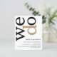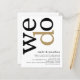 Una alternativa de valor por dinero BUDGET en un tamaño menor de 4,5 x 5,6" de peso semibrillante de 110 libras, que es de espesor similar al de una postal (sin embargo, no es adecuado para usar como postal). POR FAVOR, TENGA EN CUENTA QUE HAY UNA invitación por hoja. PRESUPUESTO QR Code Gold Invite a la Boda Blanca Negra. Añade tu código QR al sitio web de tu boda en la parte posterior para que tus invitados puedan ver todos los detalles en línea sin necesidad de gabinetes separados. Un diseño tipográfico moderno con We Do en tipografía grande rotada y al lado de arriba en negro y oro sobre un fondo de blanco. Los colores del fondo y del texto se pueden cambiar si se desea a través del Personalizar.