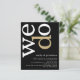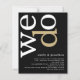Una alternativa de valor por dinero BUDGET en un tamaño menor de 4,5 x 5,6" de peso semibrillante de 110 libras, que es de espesor similar al de una postal (sin embargo, no es adecuado para usar como postal). POR FAVOR, TENGA EN CUENTA QUE HAY UNA invitación por hoja. PRESUPUESTO QR Code White Gold Invite a la Boda Negra. Añade tu código QR al sitio web de tu boda en la parte posterior para que tus invitados puedan ver todos los detalles en línea sin necesidad de gabinetes separados. Un diseño tipográfico moderno con We Do en tipografía grande rotada y al lado de la parte superior en blanco y oro sobre un fondo de negro. Los colores del fondo y del texto se pueden cambiar si se desea a través del Personalizar.