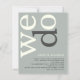 Una alternativa de valor por dinero BUDGET en un tamaño menor de 4,5 x 5,6" de peso semibrillante de 110 libras, que es de espesor similar al de una postal (sin embargo, no es adecuado para usar como postal). POR FAVOR, TENGA EN CUENTA QUE HAY UNA invitación por hoja. PRESUPUESTO Simple QR código Sage Ivory Text Wedding Invite. Añade tu código QR al sitio web de tu boda en la parte posterior para que tus invitados puedan ver todos los detalles en línea sin necesidad de gabinetes separados. Un diseño tipográfico moderno con We Do en tipografía grande en marfil con ellos "d" en gris, rotado y a la izquierda sobre un fondo de verde salvia claro. Los colores del fondo y del texto se pueden cambiar si se desea a través del Personalizar.