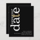 Una alternativa de valor por dinero BUDGET en un tamaño menor de 4,5 x 5,6" de peso semibrillante de 110 libras, que es de espesor similar al de una postal (sin embargo, no es adecuado para usar como postal). POR FAVOR, TENGA EN CUENTA QUE HAY UNA invitación por hoja. Presupuesto Código QR Libro Blanco Oro Texto Negro Fecha de guardado. Agregue su código QR al sitio web de su boda en la parte posterior reemplazando el código QR del ejemplo. Puede crear códigos QR en línea de forma gratuita. Simplemente busca "creador de código QR" y surgen muchas opciones para crearlas gratis. Diseño tipográfico moderno y elegante para invitar a su familia y amigos a guardar su cita, con Save Our Date girado en tipografía grande y a la izquierda arriba en blanco, con una letra "t" dorada sobre un fondo de negro. Personaliza fácilmente el resto del texto.