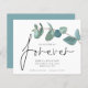 Código QR Decidimos por la boda de Eucalyptus para siempre Guardar la fecha. Un precio económico menor 4,5" x 5,6" alternativa. Disponible en un ALMACENAMIENTO DE TARJETAS SEMI-GLOSS de 110 lb que es la opción predeterminada (más grueso para las invitaciones), O UN ALMACENAMIENTO DE PAPELES DELGADOS SATIN FINISH DE 80 lb (ideal para los gabinetes). Agregue su código QR al sitio web de su boda en la parte posterior reemplazando el código QR del ejemplo. Para siempre en un guión conjunto informal.El resto del texto que puede personalizar fácilmente. Los colores de fondo blanco y de texto se pueden cambiar si se desea a través de la opción personalizar adicional.