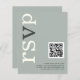 Una alternativa de valor por dinero BUDGET en un tamaño menor de 4,5 x 5,6" de peso semibrillante de 110 libras, que es de espesor similar al de una postal (sin embargo, no es adecuado para usar como postal). POR FAVOR, TENGA EN CUENTA QUE HAY UNA por hoja. QR Code Sage Boda de marfil en línea RSVP. Añade tu código QR a tu sitio web boda para que tus invitados puedan ver RSVP en línea. Un diseño tipográfico moderno con RSVP en tipografía grande en marfil con la "v" en gris, rotada y a la izquierda en un fondo de verde salado claro. Los colores del fondo y del texto se pueden cambiar si se desea a través del Personalizar.