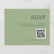 Sencillo gabinete RSVP Sage Green Wedding de código QR, por lo que es conveniente que sus invitados respondan escaneando el código QR que lleva a su sitio web boda. Una alternativa económica de 4,5" x 5,6". Disponible en un ALMACENAMIENTO DE TARJETAS SEMI GLOSS 110 lb o en un SATIN FINISH DE PAPEL DELGADO DE 80 lb. Los sobres son un extra opcional y son algo más grandes que el tamaño de la tarjeta. Un diseño tipográfico simple y totalmente personalizable. Personalice las palabras con facilidad y reemplace el código QR de ejemplo con el suyo propio. También puede cambiar el texto y los colores de fondo si lo desea a través de la opción personalizar para que coincida con el tema de color boda. Si necesitas ayuda con esto, por favor envíame un mensaje.