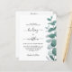 Invite a su familia y amigos a la celebración de su boda con esta elegante invitación a la boda. Está decorado con estribos de eucaliptos acuáticos en tonos verdes. Guarde el papel incluyendo los detalles de la parte posterior de la invitación a la boda, en lugar de en tarjetas separadas. Incluya el código QR de su sitio web boda. Acuarela original © Michele Davies.