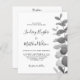 Invite a su familia y amigos a la celebración de su boda con esta elegante invitación a la boda. Está decorado con estribos de eucaliptos acuáticos en tonos monocromos. Guarda el papel incluyendo los detalles en la parte posterior de la invitación de boda en lugar de en tarjetas independientes. Incluya el código QR de su sitio web boda. Porque creamos nuestra obra de arte no encontrarás esta imagen exacta de otros diseñadores. Acuarela original © Michele Davies.