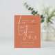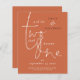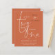 Presupuesto Cita Romántica Cita Terracotta Boda Guardar Fecha. Una cita romántica y los dos se convertirán en uno está en una tipografía elegante con sus nombres a la fecha derecha y boda en la parte inferior que usted puede personalizar fácilmente. También puede cambiar los colores de fondo en ambos lados para que coincidan con el tema de color boda si lo desea a través de la opción Personalizar Más adelante, así como otras ediciones. Si necesitas ayuda, por favor envíame un mensaje.