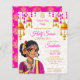 Plantilla de presupuesto para la ceremonia de mitad de sari invitación al adorable chica indio en ropa tradicional personalizado con campanas doradas y guirnaldas de cerise tassel Ganehsha