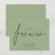 Una alternativa de valor por dinero BUDGET en un tamaño menor de 4,5 x 5,6" de peso semibrillante de 110 libras, que es de espesor similar al de una postal (sin embargo, no es adecuado para usar como postal). POR FAVOR, TENGA EN CUENTA QUE HAY UNA invitación por hoja. Presupuesto Decidido en Forever Sage Green Save The Date Un diseño sencillo sobre un fondo verde sabio para invitar a sus invitados a guardar su fecha. Decidimos por Forever que está en un guión elegante está en el centro.El resto del texto que puedes personalizar fácilmente. Los colores del texto y del fondo pueden cambiarse si desea adaptarse mejor a su tema boda a través de la opción personalizar.