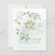 Presentamos nuestra impresionante vegetación botánica y la invitación a la boda con temática de oro! Este magnífico diseño presenta hojas de eucalipto en color agua en tonos salvia y verde esmeralda, bellamente acentuadas con detalles dorados. Esta invitación invitante es sólo una pieza de la colección más grande, que incluye invitaciones a la boda, invitaciones a la ducha de novias, guardar las fechas, tarjetas RSVP, carteles de bodas, cartas de asientos y más. ¡Echa un vistazo a toda la gama de elementos de la página de la colección! Dar vida a su visión boda con las herramientas de diseño fáciles de usar de Zazzle. Agregue una foto, código QR o cualquier detalle especial que desee incluir, y si necesita ayuda, nuestro Diseñador LIBRE en vivo está disponible para ayudar con las ediciones de personalizados y los elementos coincidentes que no se encuentran en la colección. Esta vegetación y el diseño dorado son la elección perfecta para cualquier temporada, ya sea que esté planeando una boda de primavera, verano, otoño o invierno. Su estilo elegante y moderno lo hace ideal para bodas de cuentos de hadas, boho, clásico, elegante, moderno, al aire libre, jardín, bosques, bosques, graneros o campo. Y, con su escritura rústica y su tipografía de estilo escritura a mano, le agregarán un toque de encanto y personalización a su invitación. Haga inolvidable su día de bodas con nuestras hermosas hojas de vegetación botánica y la invitación a la boda con temática de oro. Derechos de autor de www.weddingdesignchic.com LeahG. Todos Los Derechos Reservados.