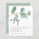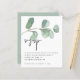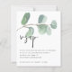Eucalyptus Elegant Script QR Boda de código RSVP gabinete. Un precio económico menor 4,5" x 5,6" alternativa. Disponible en un ALMACENAMIENTO DE TARJETAS SEMI-GLOSS de 110 lb que es la opción predeterminada (más grueso para las invitaciones), O UN ALMACENAMIENTO DE PAPELES DELGADOS SATIN FINISH DE 80 lb (ideal para los gabinetes). Añada su código QR al sitio web de su boda en la parte posterior, lo que hace que sea una opción conveniente para sus invitados a RSVP. Puede crear códigos QR en línea de forma gratuita. Simplemente busca "creador de código QR" y surgen muchas opciones para crearlas gratis. El eucalipto de color verde artístico fluye por la parte superior y un elegante estilo de conjunto informal para el encabezado con todos los detalles estilizados por debajo.