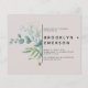 Invite a amigos y familiares a que se unan a usted para sus celebraciones bodas con esta moderna invitación a bodas purpurinas de oro y eucalipto. **POR FAVOR LEA ANTES DE COMPRAR** 1. La papelería presupuestaria mide 4,5" x 5,6" y encaja dentro de un sobre A6. Puede agregar sobres blancos a su pedido. 2. Cada hoja es un artículo - no se requiere ningún corte. 3. El material de cartón es blanco brillante con un acabado semi-brillante y peso de 110 libras que es adecuado para el papel. 4. NO le aconsejamos que elija la opción de papel satinado ya que es un papel mucho más delgado de 80lb, que se parece más a páginas de revistas que a cardstock. 5. Si haces cambios y el diseño está recortado o no aparece en la pantalla, por favor utiliza el servicio de diseño en vivo para ayudarle a arreglarlo. 6. Su pedido va directamente a las impresoras. Lo que ve en la pantalla es lo que se imprimirá y se le enviará. Compruebe tres veces si hay errores ortográficos o información incorrecta antes de realizar el pedido.