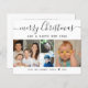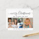 Moderna tarjeta de Navidades de fotografía para personalizar con 5 fotos familiares, nombre familiar y saludos de vacaciones personalizados.