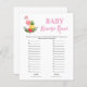 Prepárate para divertirte con nuestro juego de Baby Shower de prestatario Flamingo Baby Name Race, una actividad deliciosa para tu celebración. En este juego, los invitados correrán contra el reloj para encontrar tantos nombres de bebé por el alfabeto en el tiempo asignado. ¡El que tiene más nombres gana un premio dulce! Este juego, decorado con flamingo encantador, piña y detalles tropicales, le da un toque de dulzura a sus festividades de la ducha de bebé. Es perfecto para mantener a los huéspedes entretenidos y comprometidos mientras celebran la llegada de su pequeño. Ya sea que esté organizando una pequeña reunión o un gran fiesta, a todos les agradará participar en este divertido y emocionante juego. Con nuestro juego de Baby Shower con el flamenco económico Baby Name Race, puedes agregar un toque de diversión y risas a tu celebración mientras creas recuerdos duraderos con tus seres queridos. ¡Que comience la carrera!