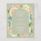 Las invitaciones a bodas "todo en uno" verdes incluyen sus detalles en la parte delantera con letras de moda con hermosas flores de acuarela - hortensias blancas y verdes, rosas rosas y cremas, margaritas, tallos pequeños y hojas - y un código QR a su sitio web boda en la parte posterior a RSVP. Impreso en papel asequible de 4,5" x 5,6" y 110 libras. **LOS ENVELOPES BLANCOS son un costo adicional. El servicio de diseño en vivo puede ayudarle con el diseño de su diseño o colores si es necesario. COINCIDIENDO con los artículos de nuestra tienda.