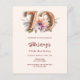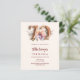 Una invitación moderna, elegante y glamurosa para celebrar su 70 aniversario. Beige, color crema, decorado con una melocotón y una flor morada acuática. El nombre está escrito con una escritura de estilo con letras a mano moderna. Personalice y agregue los detalles de su fiesta. El número 70 se escribe con un tipo de letra, guión. 1 hoja = 1 borde impreso de invitación al borde.