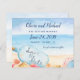 Ahorre dinero con este presupuesto ahorre la tarjeta de fecha en papel más barato y un tamaño ligeramente menor. (Tenga en cuenta que el papel semi-brillante es de mejor calidad que el papel satinado muy delgado.) Esta escena acuática de la playa muestra una botella arrastrada por la orilla, con el mensaje "Save the Date" en el interior. En la playa hay varias conchas de colores, con el océano como telón de fondo. Si desea una calidad más costosa, guarde la tarjeta de fecha en un tamaño regular de 5x7, por favor vea la colección o póngase en contacto conmigo a través de Zazzle Chat.