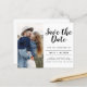 Presupuesto Foto Minimalista moderna y elegante Guardar la postal del Boda de fecha. La tarjeta de invitación para guardar la fecha incluye una tipografía de escritura con letras a mano moderna con una moda y un diseño sencillo al que se puede añadir la imagen de fotografía de compromiso personalizada.