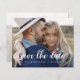 Boda manuscrita de presupuesto Guardar las tarjetas de fecha que tienen una foto en la parte delantera y trasera. Las tarjetas Save the Date Fall, Autumn, Winter, Spring o Summer contienen una moderna tipografía de escritura cursiva con letras a mano con corazones elegantes, sencillos y modernos para usar después de la minimalista celebración del día de la boda.