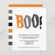 ¡Boo de la fiesta de Halloween del PRESUPUESTO! Invitación personalizada... diseñada con un fondo de rayas naranja, negro y gris y texto en negrita - una invitación simple y moderna de Ricaso para la fiesta de Halloween - perfecta para tu evento spooktacular
