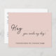 Moderno De Moda Hey Hiciste Mi Día Personalizado Script Nombre Rubor Pink Heart Small Business Order Gracias Tarjeta