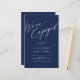 Simple moda mínima caligrafía caprichosa azul marino oscuro estamos contratados con presupuesto de escritura asequible invitación de fiesta de compromiso.