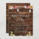 Fiesta de cumpleaños de presupuesto País rústico al aire libre en Madera Oscura con girasoles borgoñados, Naranjas y amarillos con macarrones en cadenas Invitaciones de otoño o cumpleaños - incluye hermosa y elegante tipografía de escritura para la celebración especial de cumpleaños.