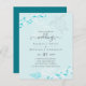 Audaces tortugas verde azuladas, turquesas y azules y hojas tropicales, corales, algas marinas son las características de esta moderna vida oceánica, invitación a la boda con temática de playa y mar.Campos de plantilla de texto en ambos lados garantizan que pueda agregar todos sus detalles adicionales, incluyendo rsvp, registro de regalos, detalles de recepción, direcciones y más.