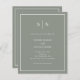 Estas elegantes, modernas y económicas invitaciones a la boda se imprimen en papel. Cuentan con un sencillo diseño de texto minimalista en blanco y verde sabio, con un marco clásico en el borde. Añada sus iniciales o su monograma para hacerlas completamente propias. La parte posterior de la invitación tiene espacio para añadir cualquier información de los invitados, además de un escaneado código QR para que los huéspedes puedan ver RSVP en línea en su sitio web boda.