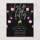 Celebra su fabuloso cumpleaños número 50 con estilo y asequibilidad con esta invitación moderna y colorida de 50 años. El diseño presenta las palabras "fab & cincuenta" en un moderno guión escrito a mano con un borde de coloridas gotas de purpurina brillante y dos vasos de champán dorado tostado. En la parte inferior de la tarjeta se muestran los detalles de la celebración de cumpleaños que se pueden personalizar totalmente según tus necesidades. En el lado inverso se observa un patrón purpurina rayado en color rosa.