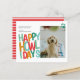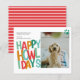 PRESUPUESTO Feliz Día de Amanecer Fotos Personalizadas Tarjeta de Navidades divertidos y coloridos de Ricaso - diseñada con un texto tipográfico audaz con plantilla de fotografías al frente y un patrón a rayas al fondo - envía tus saludos de vacaciones del perro este Navidad