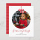 PRESUPUESTO Navidades personalizados Tarjeta fotográfica en baudible de Ricaso - diseñada con un texto de tipografía de desplazamiento con plantilla fotográfica al frente y un patrón a rayas al fondo - una tarjeta fotográfica simple y elegante para la temporada de vacaciones, perfecta para uso familiar, de amigos, de negocios y corporativo