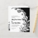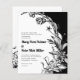 Presentamos una invitación a una boda floral de estilo vintage y económica con flores de arte de línea blanca y negra y tipografía elegante. En la parte de atrás, hay un conveniente código QR para RSVP en línea. La invitación muestra una encantadora guirnalda floral blanca y negra de época con un fondo blanco.