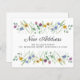 Esta invitación de movimiento económico está decorada con delicadas flores acuarelas y follaje en tonos pastel y New Address en una tipografía de escritura elegante. Personalizable fácil. Acuarela original © Michele Davies.
