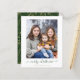 BUDGET Green Gold Simple Script Modern Merry Christmas Photo Card con tus fotos favoritas y un guión sencillo pero elegante Feliz Navidad. La parte trasera está decorada con un estampado festivo y elegante de hojas de Relieve metalizado dorado, pino y otras plantas botánicas de invierno sobre un fondo verde de invierno. ¡Perfecto para tus tarjetas de vacaciones este año! **Nuestro artículo de PRESUPUESTO es más pequeño, más ligero y más delicado, pero aún hermoso! No olvide los sobres!** Si necesita ayuda o elementos coincidentes, por favor contáctenos a cedarandstring@gmail.com.