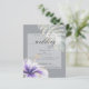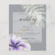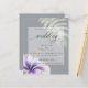 Hibiscus and Foliage Wedding Invitación a la acuarela tropical rústica y asequible | NUEVO! Invitaciones a una boda ligera y asequible - una flor lila de hibisco tropical púrpura y una hoja de helecho adornada con una hoja de fililodendros dividida en hojas adornan las esquinas diagonales opuestas, ambas con un borde de oro brillante, todas enmarcadas en un fondo gris medio con una cubierta blanca pura para que el texto sea fácilmente leído y, sin embargo, permitir que el diseño se muestre - hermosa caligrafía manuscrita - plantilla fácil de personalizar - diseño original de ©WhimsicalArtwork™ para theBarefootBride ™. Esto es parte de nuestra colección de bodas de acuarela tropical Hibiscus, así como de Invitaciones a Baby Shower, Cumpleaños y Cristianismo. Para preguntas o asistencia, póngase en contacto con el diseñador indy.designer@yahoo.com.