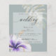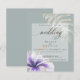 Hibiscus and Foliage Wedding Invitación a la acuarela tropical rústica y asequible | NUEVO! Invitaciones a una boda ligera y asequible - una flor lila de hibisco tropical púrpura y una hoja de helecho adornada con una hoja de fililodendros dividida en hojas adornan las esquinas diagonales opuestas, ambas con un borde de oro brillante, todas enmarcadas en un fondo verde sabio polvoriento con un sobrecoste blanco para que el texto sea fácilmente leído y sin embargo permita que el diseño se muestre - hermosa caligrafía manuscrita - fácil de escribir Plantilla de personalizar - diseño original de ©WhimsicalArtwork™ para el BarefootBride ™. Esto es parte de nuestra colección de bodas de acuarela tropical Hibiscus, así como de Invitaciones a Baby Shower, Cumpleaños y Cristianismo. Para preguntas o asistencia, póngase en contacto con el diseñador indy.designer@yahoo.com.