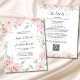 Presupuesto todo en uno con detalles y el código QR Roses rosados Sage Greenery Wedding Invitation... Nuestra invitación a una boda floral con presupuesto "All in One" incluye una variedad de rosas rosa pastel y vegetación arbolada enmarcando su texto de invitación delante de la tarjeta. La parte posterior de la tarjeta, bordeada por rosas rosas rosas rosas en la parte superior e inferior, contiene todos los detalles que normalmente se verían en tarjetas separadas en el paquete boda. Esta moderna invitación a la boda fue diseñada para ser a la vez elegante y de bajo costo... por no hablar de ahorrar tiempo. En la parte posterior también hay una plantilla de código QR que puede reemplazar fácilmente escribiendo en su propia URL del sitio web boda. Todo el texto de ejemplo se puede revisar fácilmente con su propia información sobre la plantilla de personalización. NOTA: El papel de la tarjeta "budget" no es el mismo que las tradicionales invitaciones a tarjeta plana. Nuestras tarjetas de presupuesto son de 4.5 x 5.6 pulgadas hechas de papel semi-brillante de 110 lb comparado con las tradicionales tarjetas planas de invitación a boda a 5 x 7 pulgadas en papel mate a un peso de 120 lb. Además, las tarjetas de presupuesto no vienen automáticamente con sobres, al igual que las tarjetas de invitación tradicionales, pero puedes comprarlas en la misma página al realizar el check out si lo deseas. Todo esto en un solo diseño también está disponible en una tarjeta tradicional 5x7 de invitación a la boda.