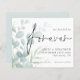 Decidimos por Forever Eucalyptus Save The Date. Un precio económico menor 4,5" x 5,6" alternativa. Disponible en un ALMACENAMIENTO DE TARJETAS SEMI-GLOSS de 110 lb que es la opción predeterminada (más grueso para las invitaciones), O UN ALMACENAMIENTO DE PAPELES DELGADOS SATIN FINISH DE 80 lb (ideal para los gabinetes). Los sobres son un extra opcional y son algo más grandes que el tamaño de la tarjeta. Hojas de eucalipto delgadas en azul polvo desde la izquierda y gradualmente tintadas en el fondo con texto que se solapa ligeramente y a la derecha. Forever está configurado en un guión elegante y el resto del texto que puede personalizar fácilmente. Un fondo de coordinación está detrás.