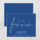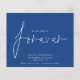 Una alternativa de valor por dinero BUDGET en un tamaño menor de 4,5 x 5,6" de peso semibrillante de 110 libras, que es de espesor similar al de una postal (sin embargo, no es adecuado para usar como postal). POR FAVOR, TENGA EN CUENTA QUE HAY UNA invitación por hoja. Presupuesto que decidimos para siempre medio azul Save The Date. Elegante diseño de tipografía para invitar a sus huéspedes a guardar su cita. Decidimos por Forever que está en un elegante guión está en el centro. El resto del texto que puede personalizar fácilmente. Los colores del texto y del fondo pueden cambiarse si desea adaptarse mejor a su tema boda a través de la opción personalizar.