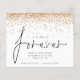 Presupuesto Que Decidimos Para Siempre Purpurina De Confetti De Oro Guardar La Fecha. Un precio económico menor 4,5" x 5,6" alternativa. Disponible en un ALMACENAMIENTO DE TARJETAS SEMI-GLOSS de 110 lb que es la opción predeterminada (más grueso para las invitaciones), O UN ALMACENAMIENTO DE PAPELES DELGADOS SATIN FINISH DE 80 lb (ideal para los gabinetes). Los sobres son un extra opcional y son algo más grandes que el tamaño de la tarjeta. Decidimos por Forever está en el centro de un elegante guión. El resto del texto que puede personalizar fácilmente. Una frontera purpurina falsa de oro recorre la parte superior a ambos lados. Los colores del texto y del fondo pueden cambiarse si desea adaptarse mejor a su tema boda a través de la opción personalizar.