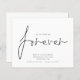 Decidimos por Forever QR Code Wedding Save the Date. Un precio económico menor 4,5" x 5,6" alternativa. Disponible en un ALMACENAMIENTO DE TARJETAS SEMI-GLOSS de 110 lb que es la opción predeterminada (más grueso para las invitaciones), O UN ALMACENAMIENTO DE PAPELES DELGADOS SATIN FINISH DE 80 lb (ideal para los gabinetes). Agregue su código QR al sitio web de su boda en la parte posterior reemplazando el código QR del ejemplo. Un diseño sencillo y elegante en blanco y negro que invita a los huéspedes a guardar su cita. Decidimos por Forever que está en un guión elegante está en el centro.El resto del texto que puedes personalizar fácilmente. Los colores del texto y del fondo pueden cambiarse si desea adaptarse mejor a su tema boda a través de la opción personalizar.