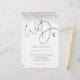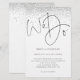 Escribimos Invitación De Boda Purpurina Plata. Un tamaño mayor de 5,5" x 8,5" a un precio económico, en una BOLSA DE TARJETAS SEMI GLOSS de 110 lb, ideal para invitaciones, aproximadamente con el mismo espesor que una postal, o un elegante stock LINEN de 110 lb - para un lujo, ligeramente más delgado a un gran valor. TENGA EN CUENTA QUE LOS ENVELOPES OPCIONALES SON UN POCO MÁS GRANDES DE TAMAÑO A 6,75" x 9" aprox. Esta alternativa de tamaño de presupuesto también está disponible en otras opciones de papel. El papel FELT de 100 libras es de color buff, NO blanco, por lo que añade un toque rústico. El material de papel MATTE 80lb es blanco brillante, para impresión crujiente, ideal para menús y programas, mientras que el papel SATIN de 80 libras es delgado y liviano, ideal para gabinetes. Guión de conjunto con estilo Nosotros hacemos toma el escenario central en la parte superior.El resto del texto que puede personalizar fácilmente. Un purpurina falso plateado está en la parte superior de la parte delantera y trasera. Los colores de texto y fondo se pueden cambiar si se desea a través de la opción personalizar adicional.