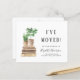 Fácil moda de boho simple y económica nueva casa / cambio de dirección invitación móvil con acuarelas de libros y plantas de la casa y tipografía moderna mínima. En el frente, personaliza con tu nombre, el texto "Me he mudado" y tu nueva dirección. Al contrario, puede personalizar su invitación con más detalle e incluir un número de teléfono y un correo electrónico si lo desea.