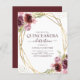 Presupuesto Borgoña y Rubor Pink Modern y Elegante Relieve metalizado dorado Faux Geometric Frame Floral Watercolor Primavera Quinceanera Invitaciones a la celebración del 15º cumpleaños - incluye hermosa y elegante tipografía de escritura con flores botánicas modernas y vegetación para la celebración especial del 15º cumpleaños.