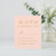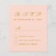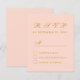Un presupuesto simple y minimalista para un boda. Sólo tiene texto en el fondo rosa de color negro. El título RSVP y la letra M están escritos en un guión caligráfico elegante, el resto en mayúsculas. Todo el texto es oro.