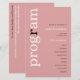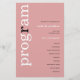 Programa de Matrimonio de Texto Rosa Sencillo y Polvo. Un precio económico de 5,5" x 8,5", en una elegante stock de 110 lb LINEN - para un ambiente de lujo a gran valor, es perfecto para menús, así como invitaciones y programas, etc. Esta alternativa de tamaño de presupuesto también está disponible en otras opciones de papel. El material de la tarjeta SEMI-GLOSS de 110 lb es aproximadamente del mismo grosor que una postal, por lo que también funciona bien para las invitaciones. El papel FELT de 100 libras es de color buff, NO blanco, por lo que añade un toque rústico. El material de papel MATTE 80lb es blanco brillante, para impresión crujiente, excelente para sus menús y programas, mientras que el papel SATIN 80lb es delgado y liviano Un diseño tipográfico moderno con el programa en tipografía grande en blanco con la "r" en negro, rotado y a la izquierda en un fondo de rosa rosa polvoriento.