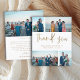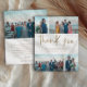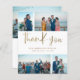 Tarjeta de agradecimiento minimalista moderno con caligrafía grande y elegante en un falso efecto de oro metálico y espacios para mostrar cuatro de tus fotos favoritas de bodas. Este elegante diseño de dos lados es fácil de personalizar, haciendo que sea divertido crear sus propias tarjetas de agradecimiento personalizadas. Perfecto para notas de agradecimiento de novios, papel fotográfico post-boda o keepsakes bodas personalizados para amigos y familiares