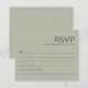 Presupuesto Simple Soft Sage Green Wedding RSVP. Un precio económico menor 4,5" x 5,6" alternativa. Disponible en un ALMACENAMIENTO DE TARJETAS SEMI-GLOSS de 110 lb que es la opción predeterminada (más grueso para las invitaciones), O UN ALMACENAMIENTO DE PAPELES DELGADOS SATIN FINISH DE 80 lb (ideal para los gabinetes). Los sobres son un extra opcional y son algo más grandes que el tamaño de la tarjeta. Este diseño contemporáneo es totalmente personalizable con texto negro y un fondo verde de sabio suave y pálido en ambos lados. Personaliza fácilmente las palabras a tu propia persona. También puede cambiar el texto y los colores de fondo si lo desea a través de la opción personalizar más para que coincida con el color del boda, sin embargo, necesitará cambiar cada lado individual de este funda. Si necesitas ayuda con esto, por favor envíame un mensaje.